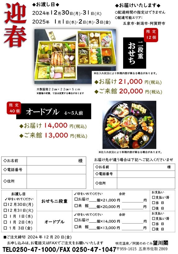 お申し込みは、お電話又はFAXでご注文をお願いいたします。