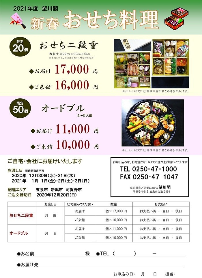 新春おせち料理&オードブルご予約のご案内
